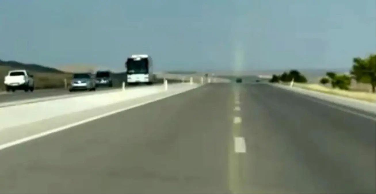 Aksaray-Konya kara yolunda karşıt taraftan yaklaşık 120 kilometre süratle seyreden kamyonet, bir diğer araçtaki yolcu tarafından cep telefonu kamerasıyla görüntülenirken, şoförün o seyahati yürekleri ağza getirdi.