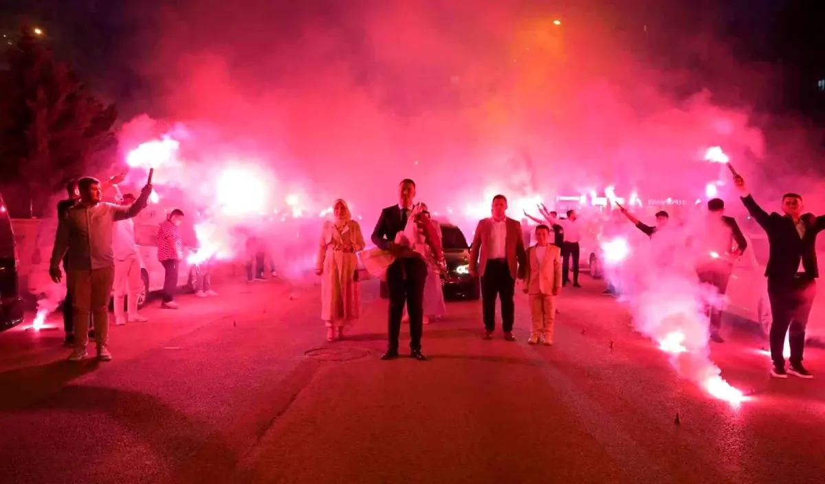 Konya’da esnaf genç, mahalleyi şenlik alanına çevirerek kız istemeye gitti. Meşalelerle yapılan gösteri, toplumsal medyada büyük ilgi gördü.