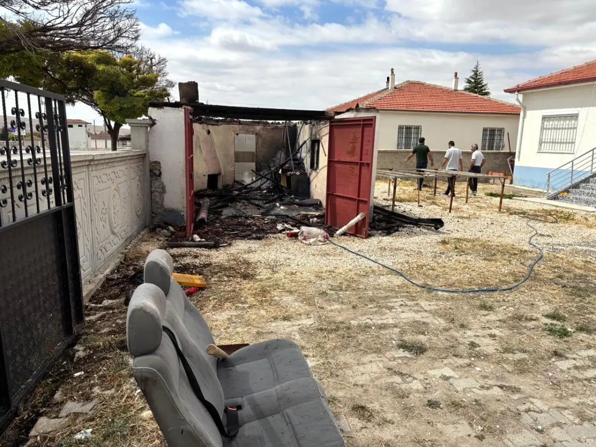 Konya’nın Kulu ilçesinde bir meskenin bahçesinde bulunan garajda çıkan yangın itfaiye tarafından söndürüldü.