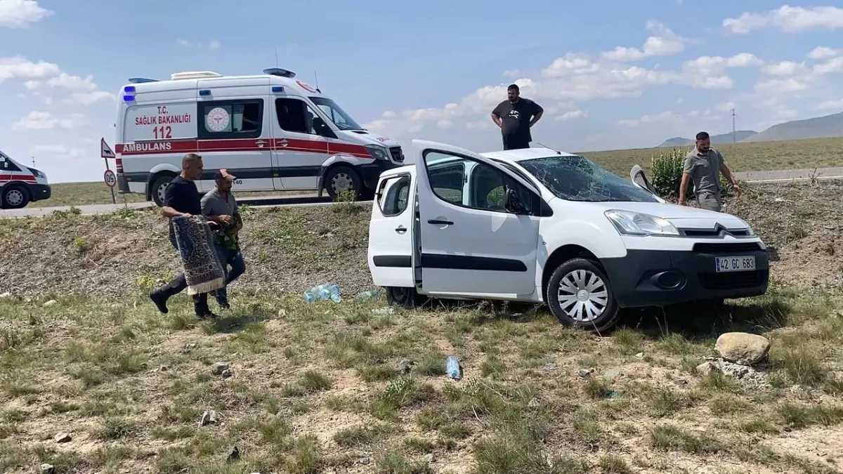 Konya’nın Kulu ilçesinde art lastiği patlayıp takla atan hafif ticari araçtaki 2 kişi yaralandı.