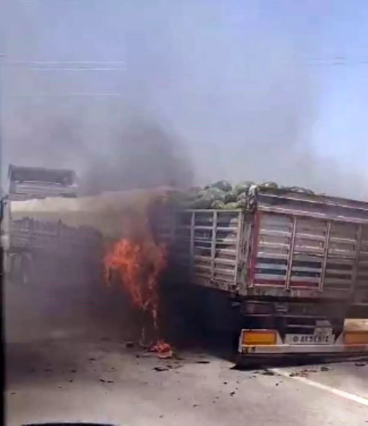Olay, Zengen Mahallesi yakınlarında meydana geldi. Edinilen bilgiye nazaran, seyir halinde olan dorsesinde karpuz yüklü tırda yangın çıktı. Dorse lastiğinden yükselen dumanları fark eden tır şoförü aracını kenara çekip durdurarak araçtan indi. Yangına birinci müdahaleyi yoldan geçen vatandaşlar yaparken, olay yerine gelen itfaiyenin müdahalesi ile yangın denetim altına alınarak söndürüldü. Yangında maddi hasar meydana geldi. Tırın dorsesindeki karpuzlar ise diğer bir araca yüklenerek götürüldü. – KONYA
