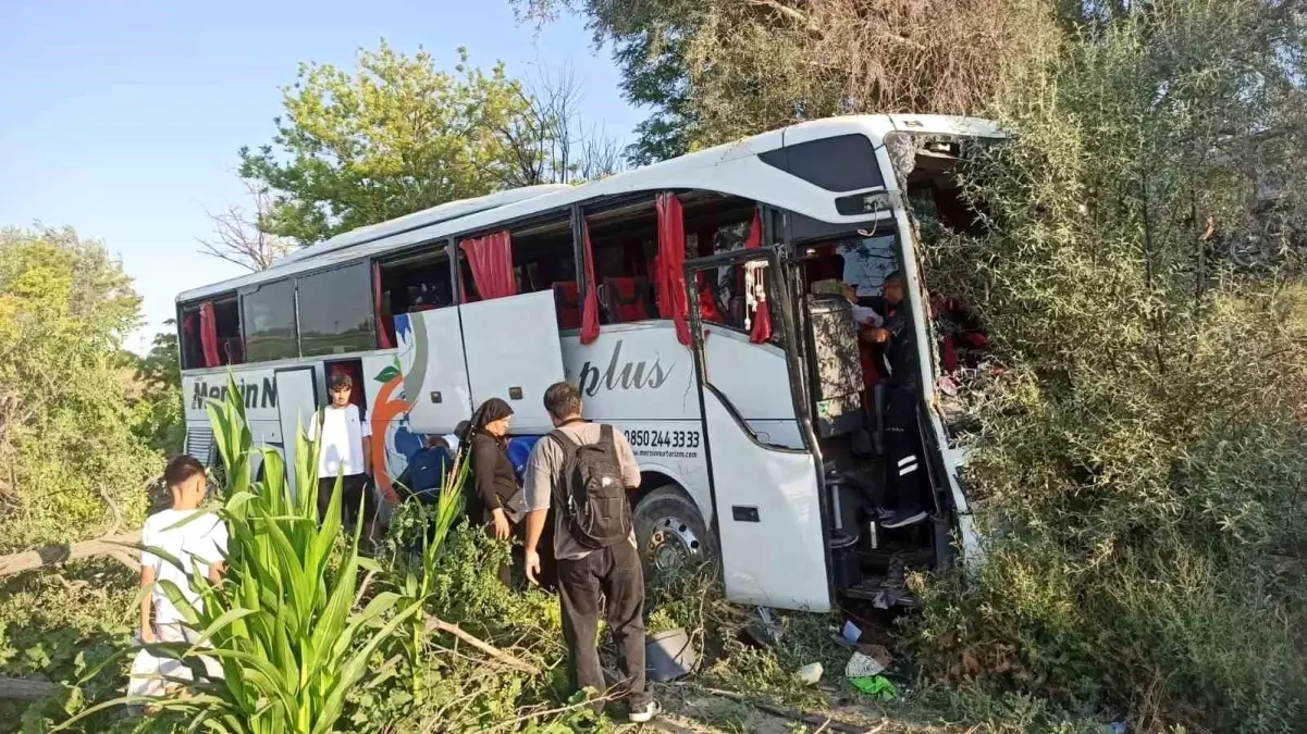 Konya’nın Karapınar ilçesinde denetimden çıkan yolcu otobüsü yoldan çıkarak şarampoldeki ağaçlara çarptı. Kazada 7 kişi yaralandı.