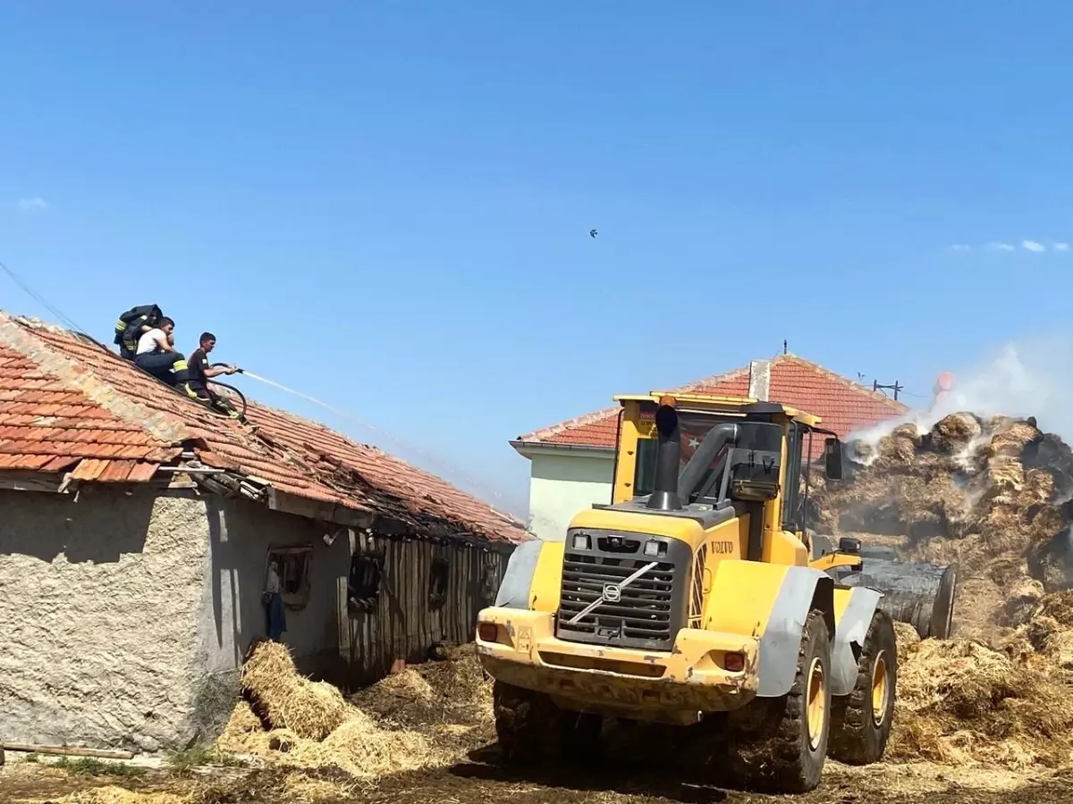 Konya’nın Kulu ilçesinde çıkan yangında saman balyaları yanarak ziyan gördü.