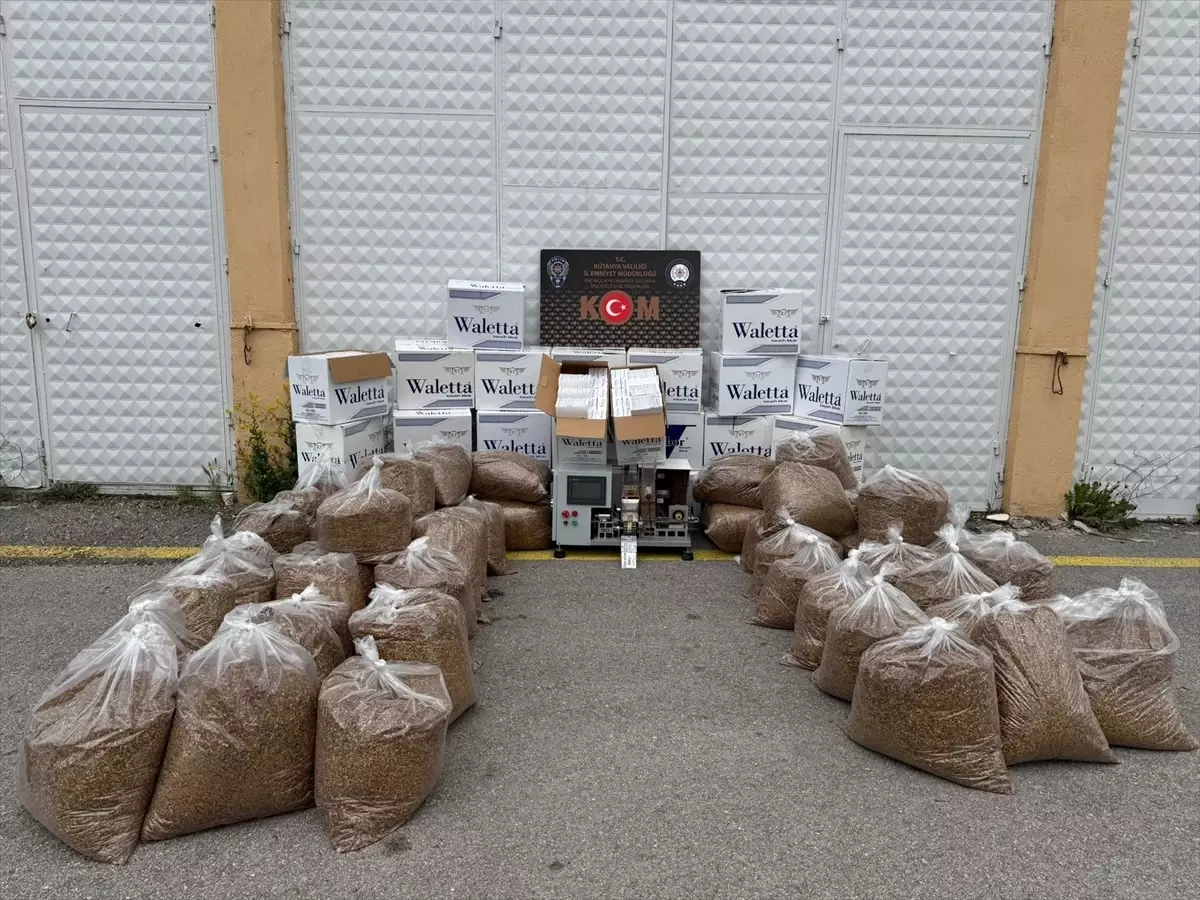 Evde yapılan aramalarda 248 bin 800 adet dolu ve boş makaron, 280 kilogram tütün ve elektrikli makaron sarma makinesi ele geçirildi.