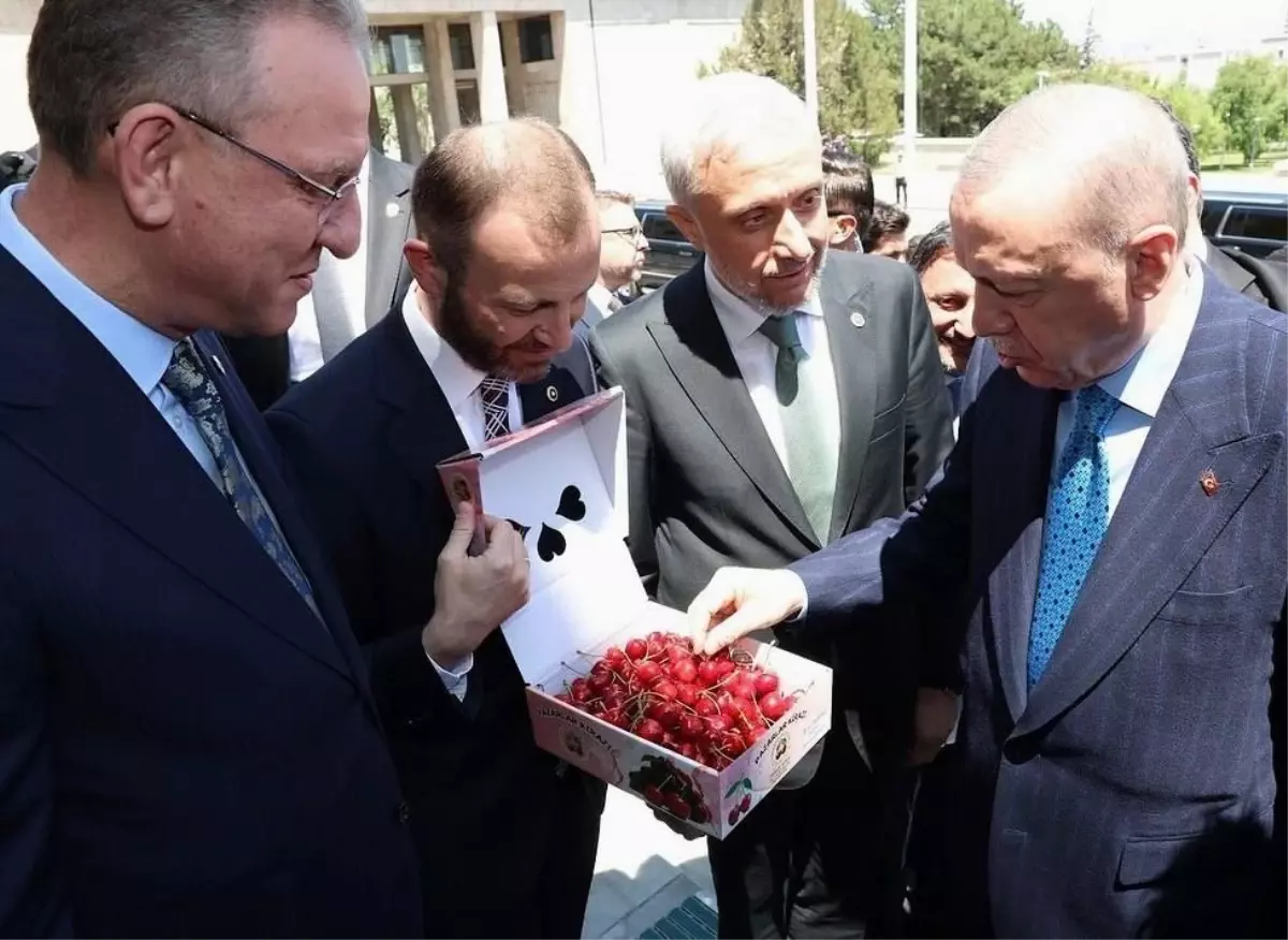 AK Parti Kütahya milletvekilleri Adil Biçer, İsmail Çağlar Bayırcı ve Mehmet Demir, AK Parti Küme Toplantısı öncesinde Cumhurbaşkanı Recep Tayyip Erdoğan’a Kütahya’nın Pazarlar ilçesinde yetişen kirazları ikram etti.